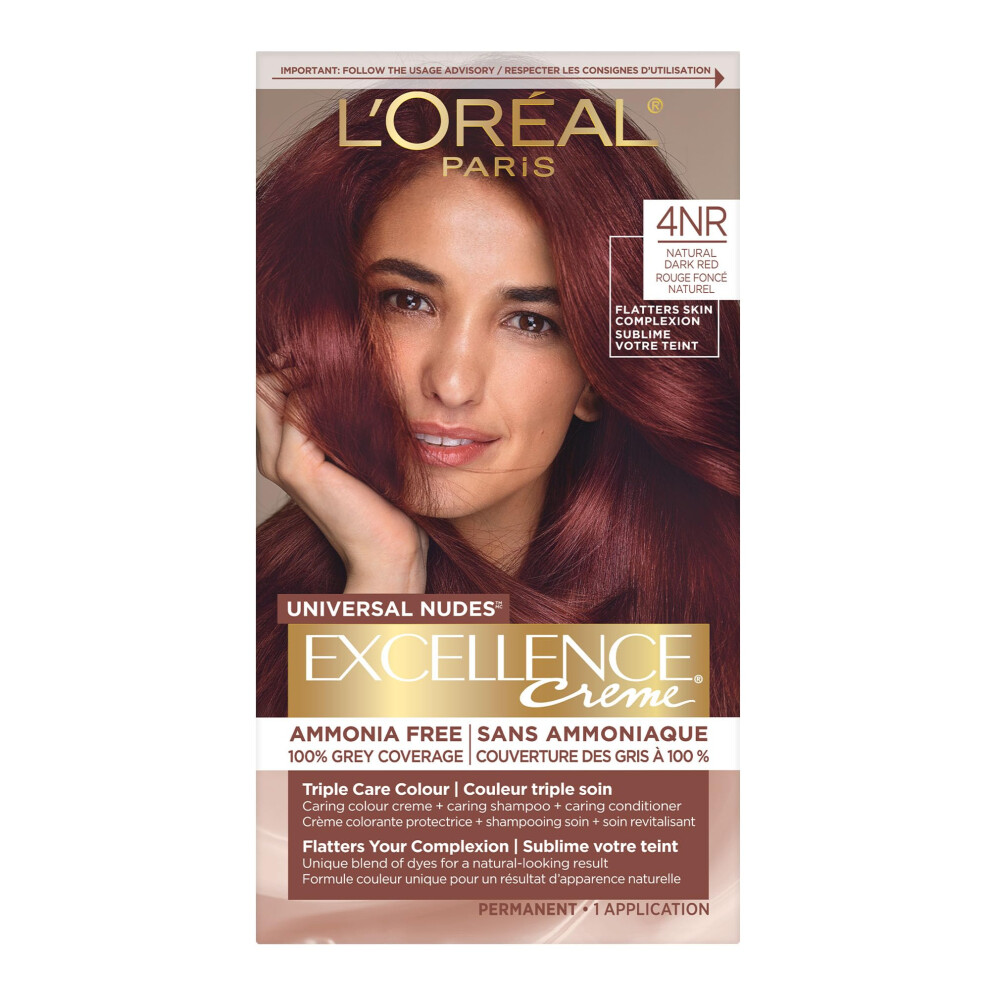 LOr?al Paris Excellence Universal Nudes Permanent Hair Color Ammonia Free Hair Dye for Gray Hair Coverage 4NR Natural Dark Red 1 Hair Dye Kit