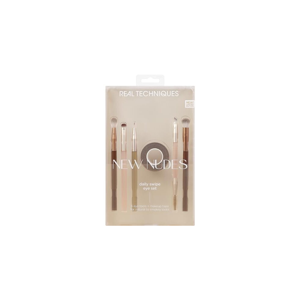 New Nudes Daily Swipe Eye Kit, Makeup Brushes For Eyeshadow, Liner, & Brows, Makeup Tape, For Natural Or Smokey Makeup Look, Synthetic Bristles,
