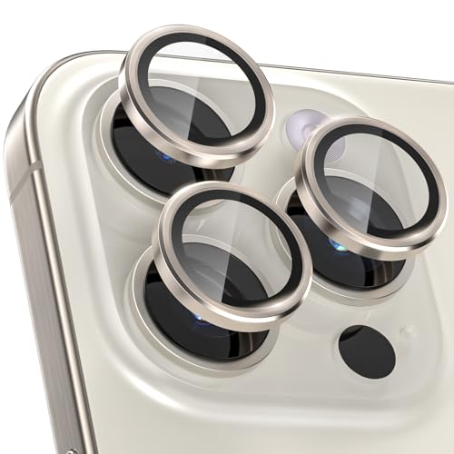 imluckies Camera Lens Protector for iPhone 15 Pro/iPhone 15 Pro Max, 9H Tempered Glass & Anti-Scratch Metal Individual Ring Lens Cover, HD Clear Camera Accessories, Easy to Install - Natural Titanium