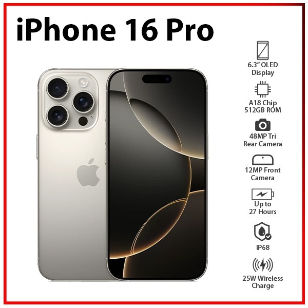 Apple iPhone 16 Pro 8GB+512GB NATURAL TITANIUM Unlocked iOS Mobile Phone
