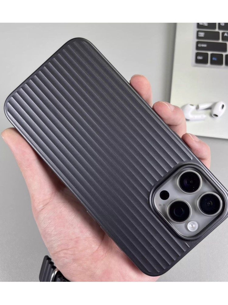 Natural Titanium grating stripe pattern phone case for iPhone 16 14 15 13 Pro Max Plus metal button shockproof hard armor cover
