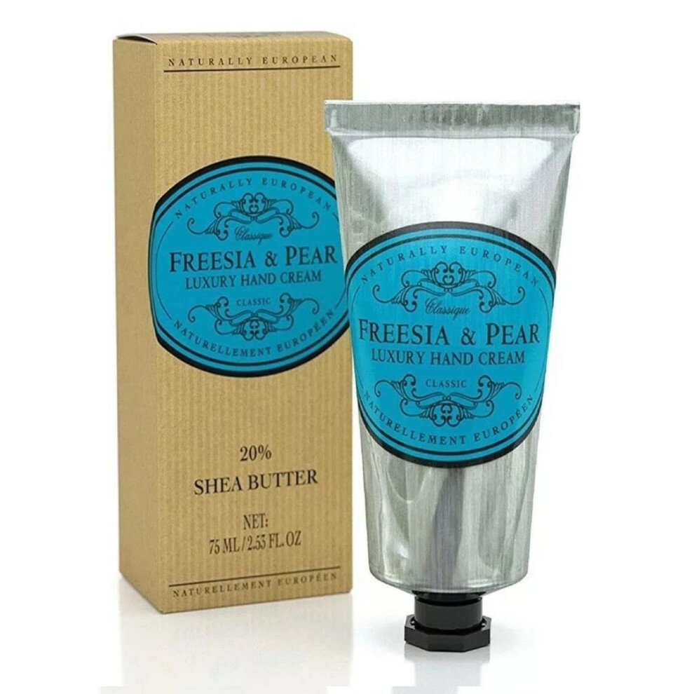 Naturally European Freesia & Pear Luxury Hand Cream Boxed 20% Shea Butter - 75ml | Combats Dry Skin For Those Hardworking Hands | Hand Cream Hand Cre
