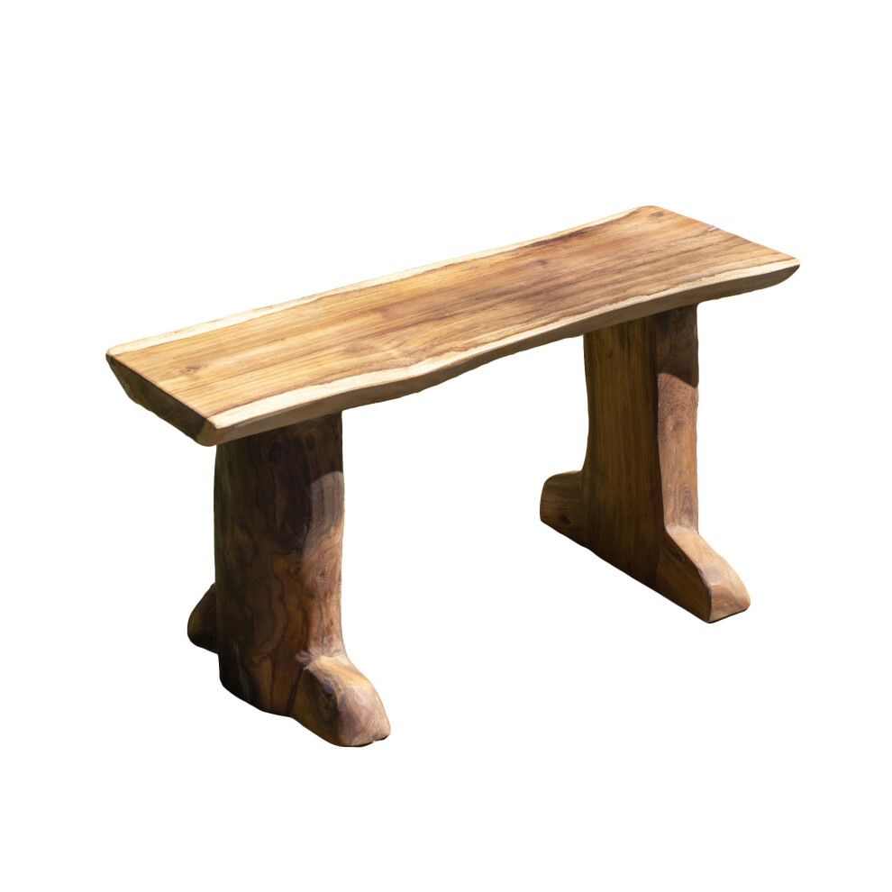 My Square Mile Wooden Garden Teak Bench Outdoor Seat Rustic Hand Carved Wood Nature Chair Furniture