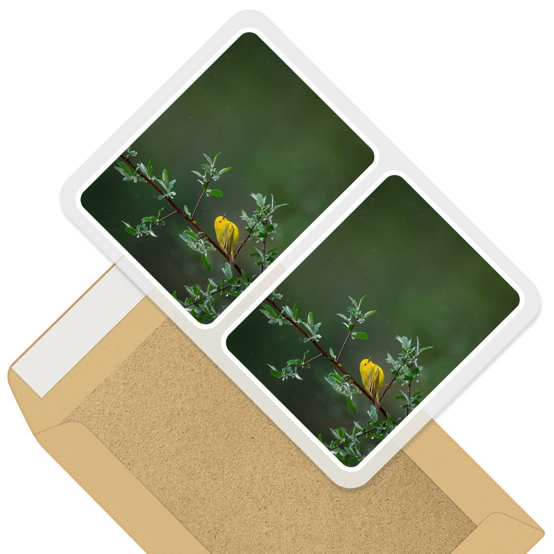 2 x Square Stickers 10 cm - Little Yellow Bird Tree Rain Nature #45583