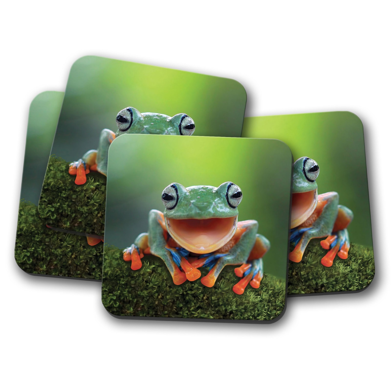 4 Set - Happy Frog Coaster - Rain Forest Jungle Tree Nature Wildlife Gift #14589