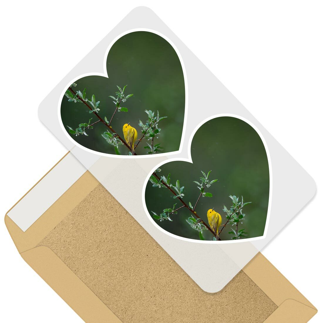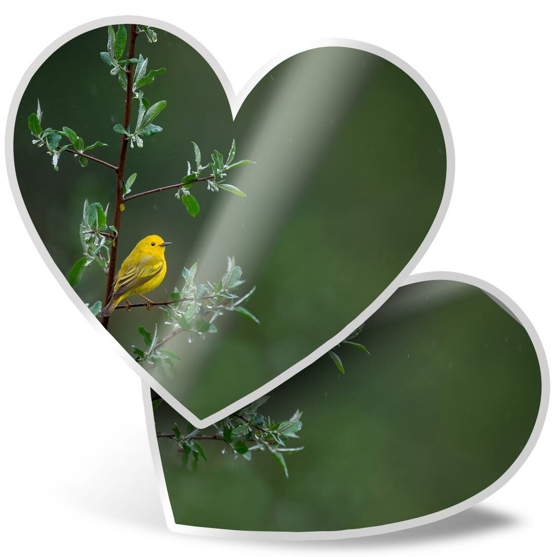 2 x Heart Stickers 7.5 cm - Little Yellow Bird Tree Rain Nature #45583