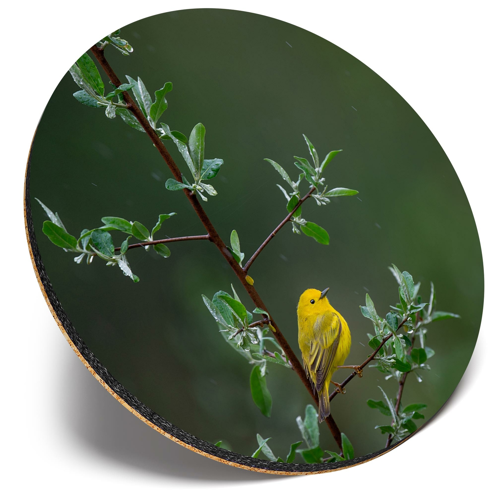 Round Single Coaster - Little Yellow Bird Tree Rain Nature #45583