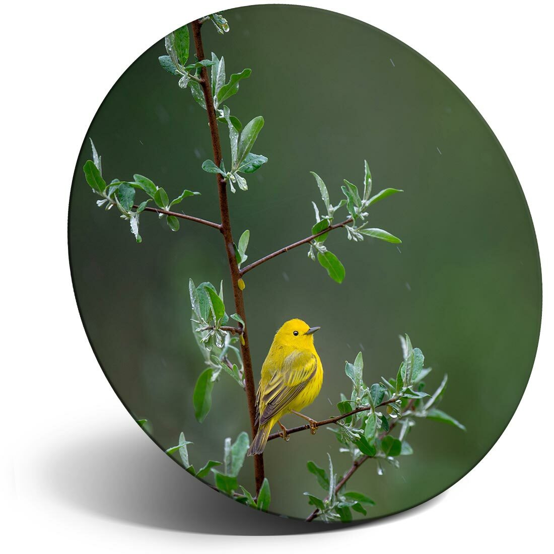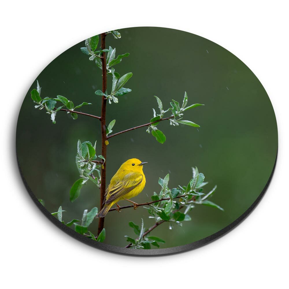 Round MDF Magnets - Little Yellow Bird Tree Rain Nature #45583
