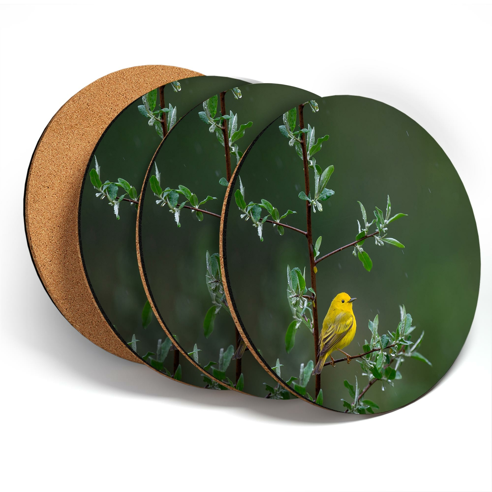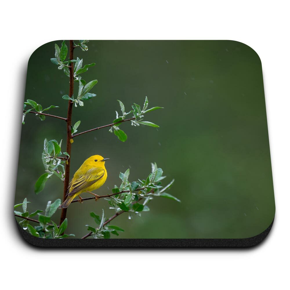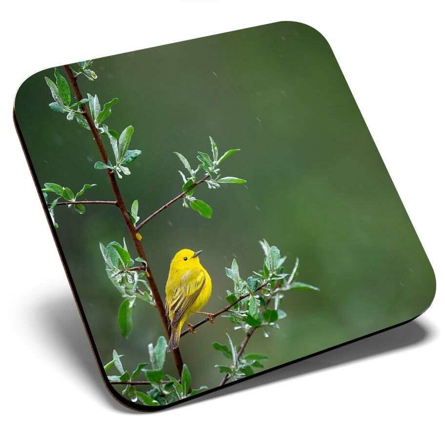 4 x Coasters - Little Yellow Bird Tree Rain Nature #45583