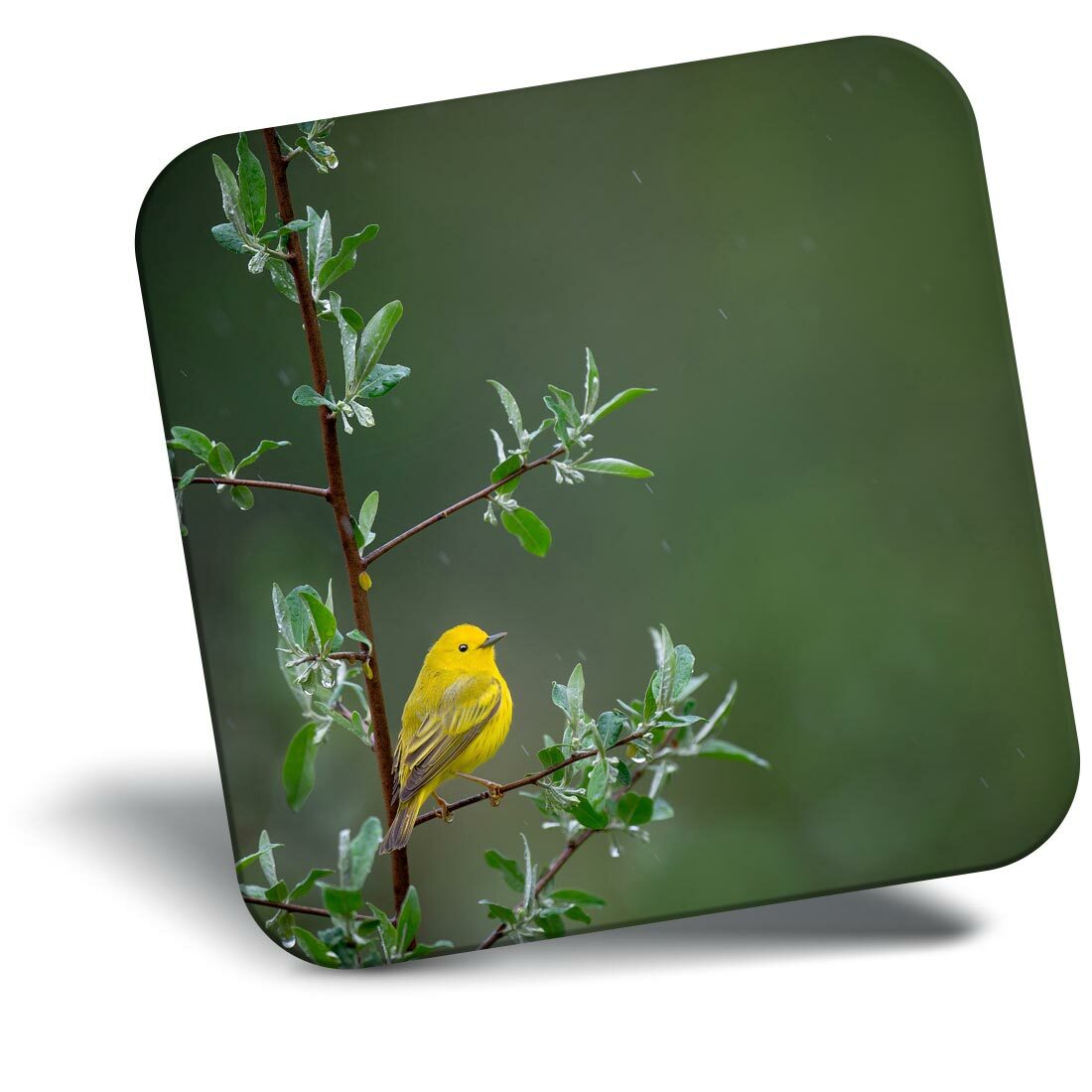 Square MDF Magnets - Little Yellow Bird Tree Rain Nature #45583