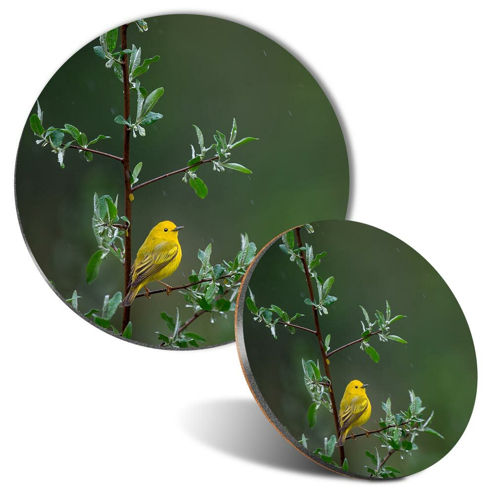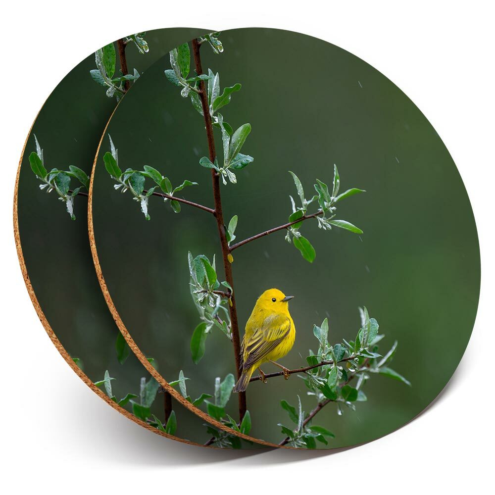 2 x Coasters - Little Yellow Bird Tree Rain Nature #45583