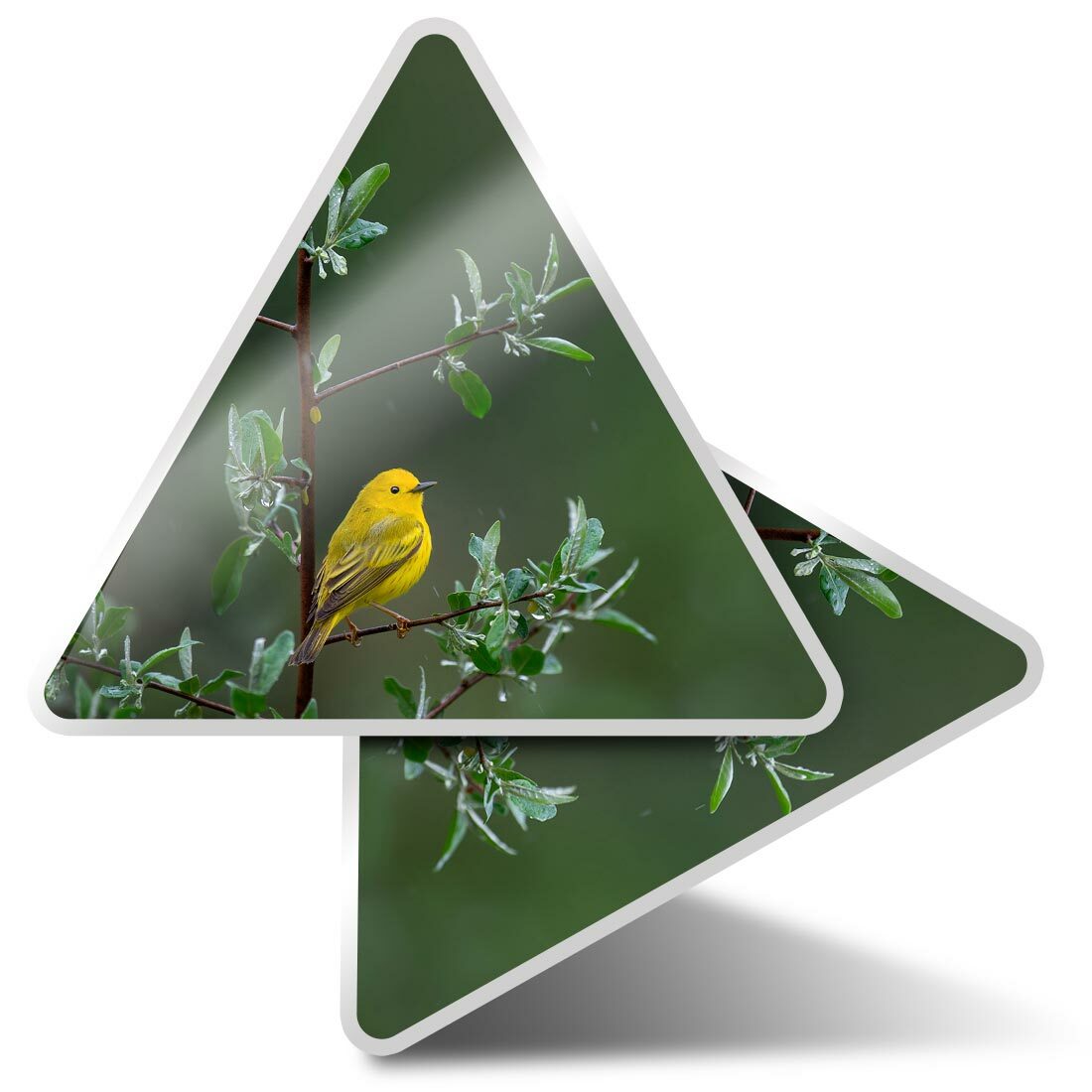 2 x Triangle Stickers 7.5cm - Little Yellow Bird Tree Rain Nature #45583