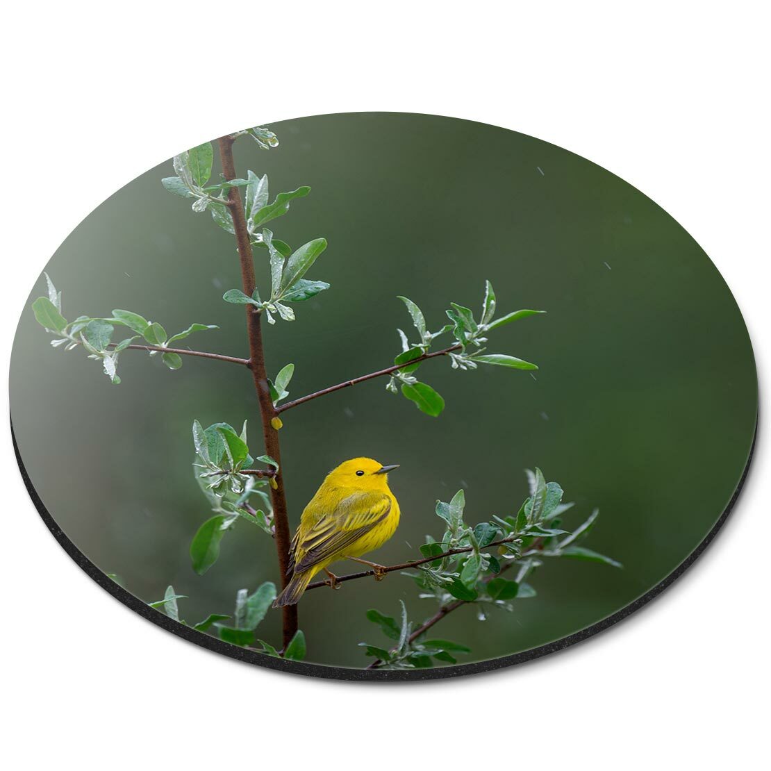 Round Mouse Mat - Little Yellow Bird Tree Rain Nature #45583