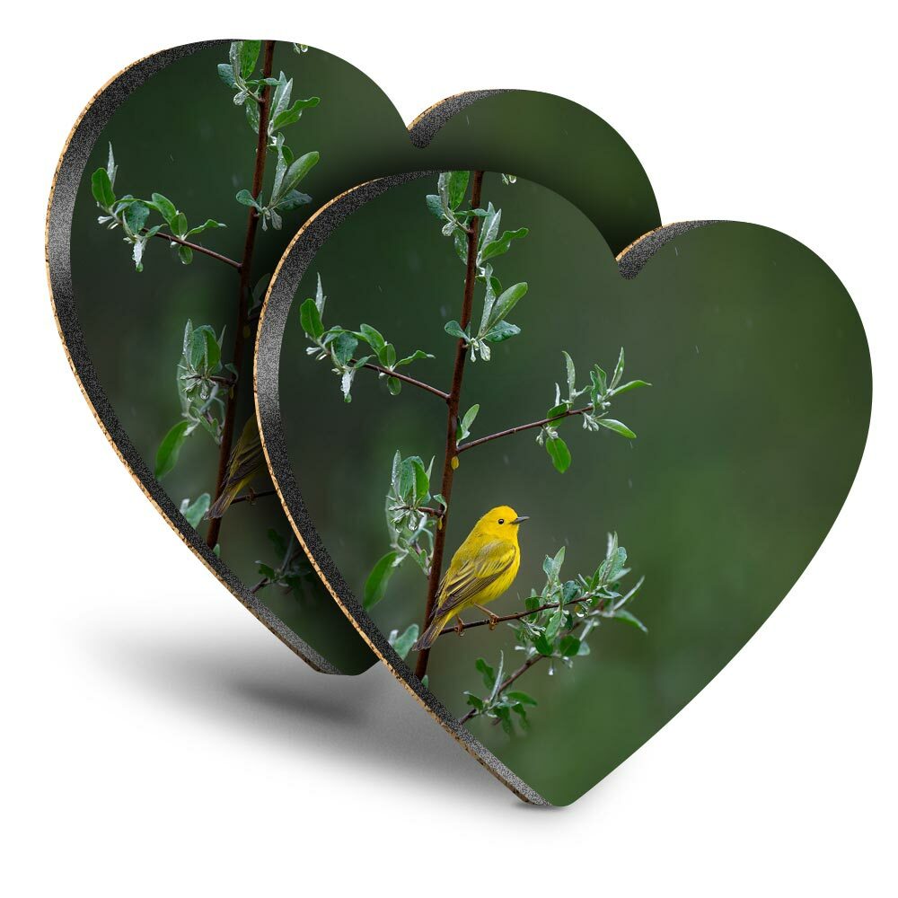 2x Heart MDF Coasters - Little Yellow Bird Tree Rain Nature #45583