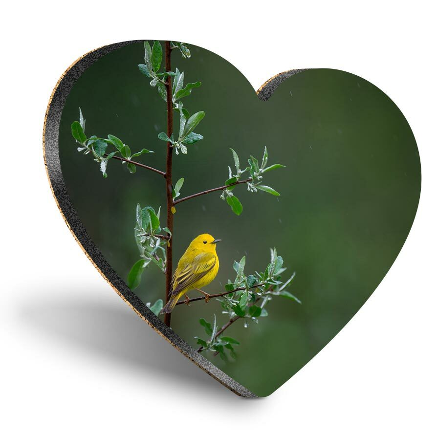 Heart MDF Coasters - Little Yellow Bird Tree Rain Nature #45583