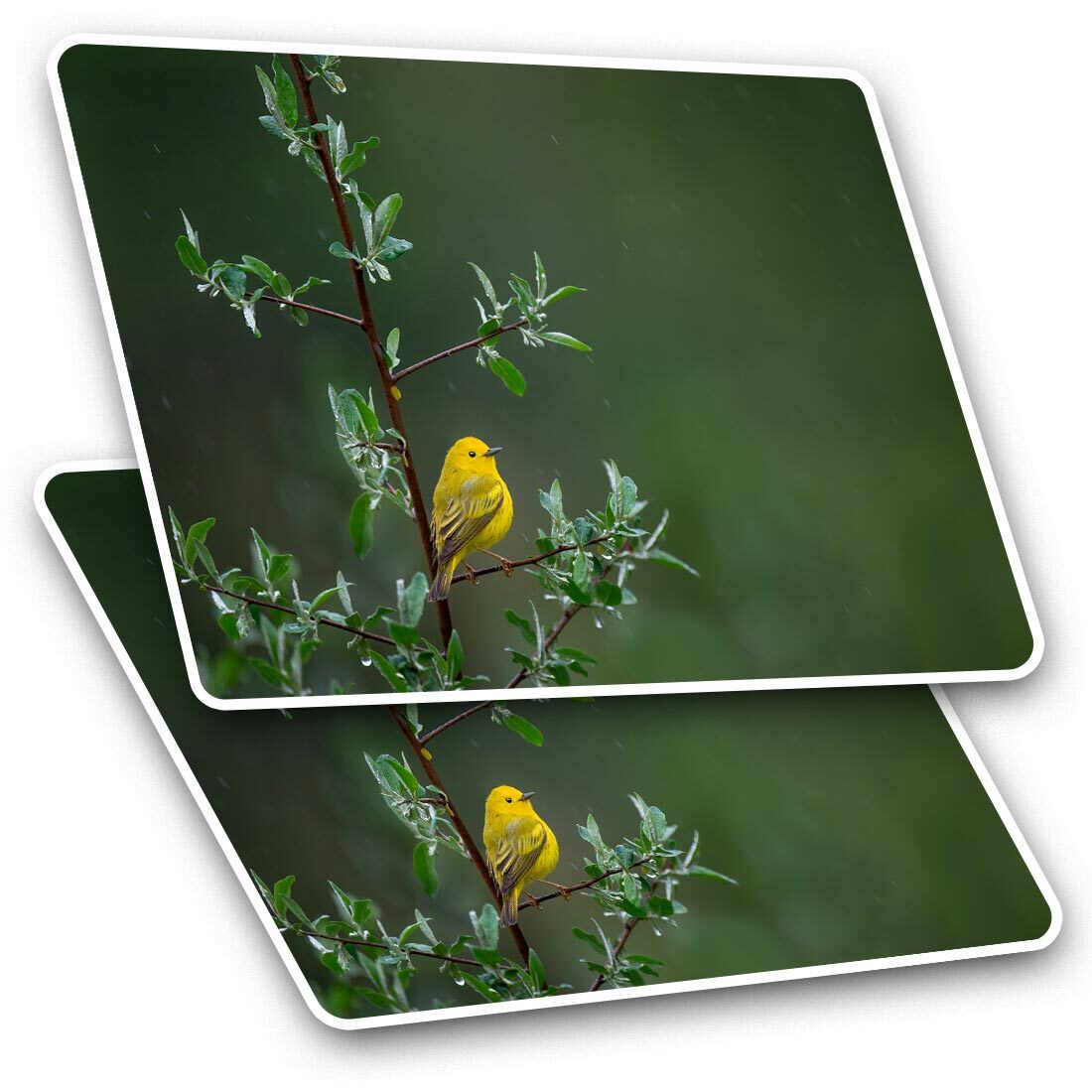 2 x Rectangle Stickers 7.5cm - Little Yellow Bird Tree Rain Nature #45583
