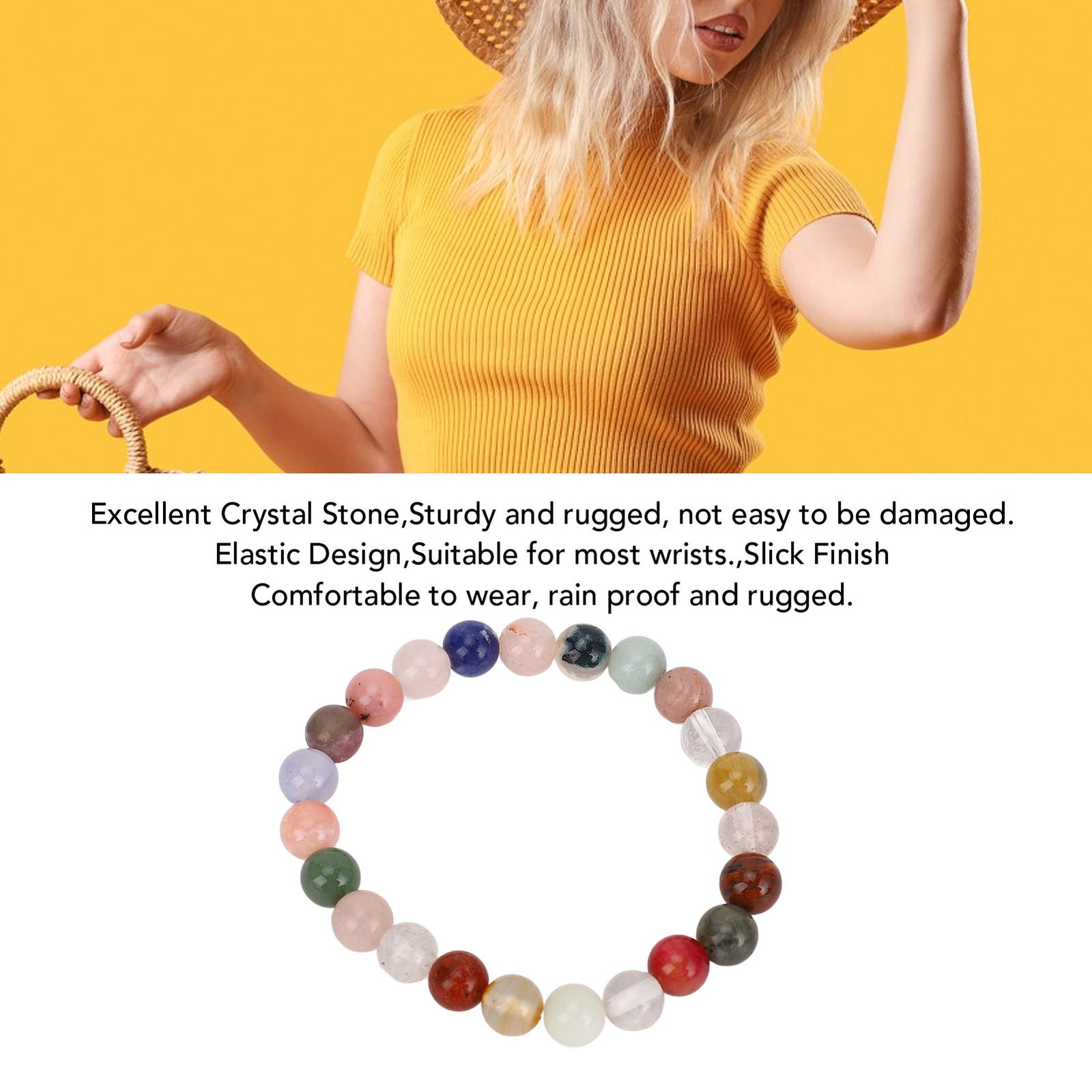 Nature Stone Bracelet 8mm Rain Proof Comfortable Slick Finish Elastic Stretchy R