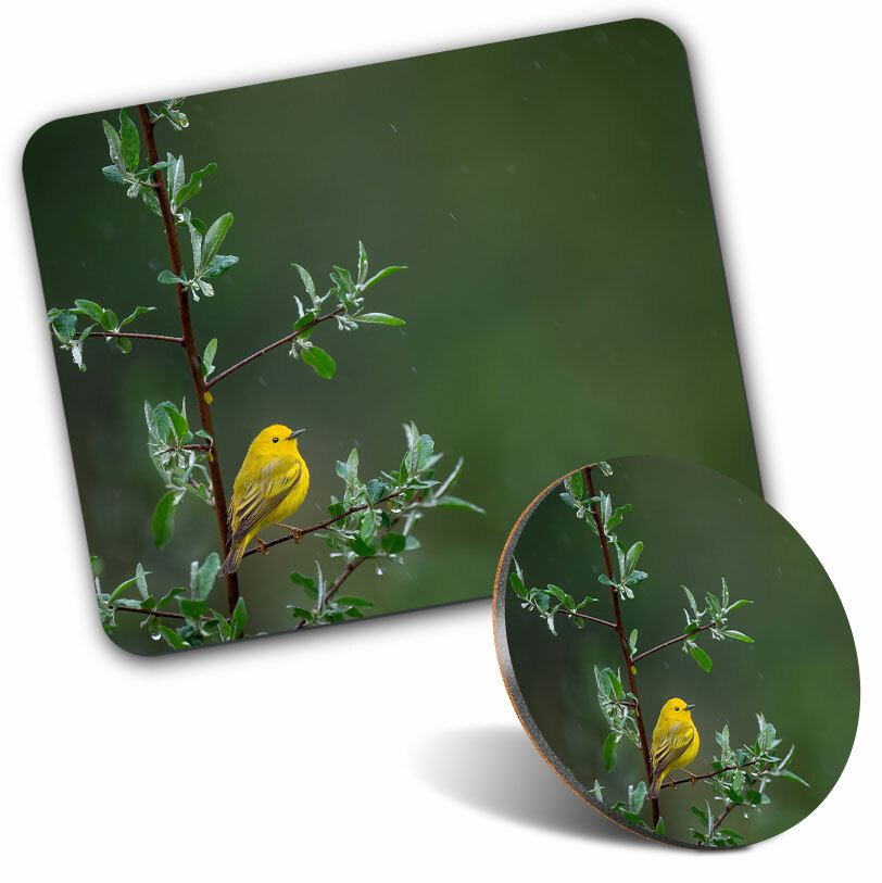 Mouse Mat & Coaster Set - Little Yellow Bird Tree Rain Nature #45583