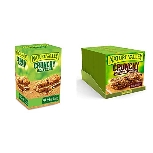 Nature Valley Crunchy Granola Bars Oats 'n' Honey, Pack of 40 Bars & Oat & Chocolate Cereal Bars - 10 Bars (Pack of 5, total 50 Bars)