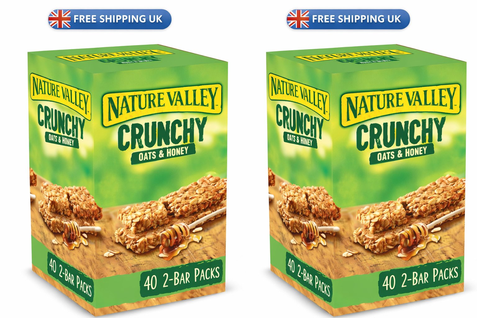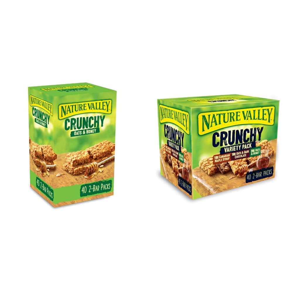 Nature Valley Crunchy Granola Bars Oats 'n' Honey, Pack of 40 Bars & Crunchy Granola Bars Variety, Pack of 40 Bars