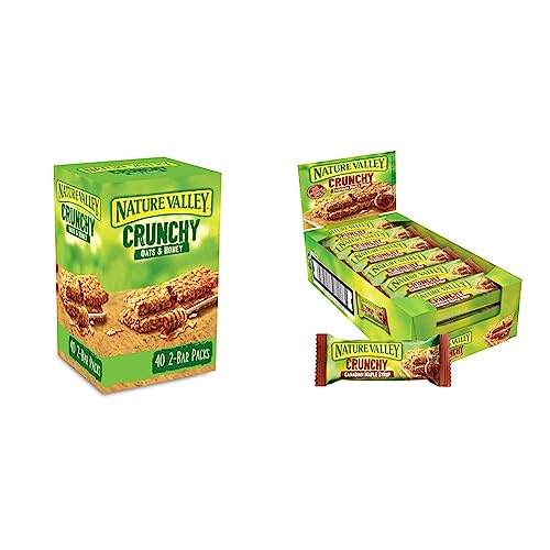 Nature Valley Crunchy Granola Bars Oats 'n' Honey, Pack of 40 Bars & Crunchy Canadian Maple Syrup Cereal Bars 42g (Pack of 18 bars)