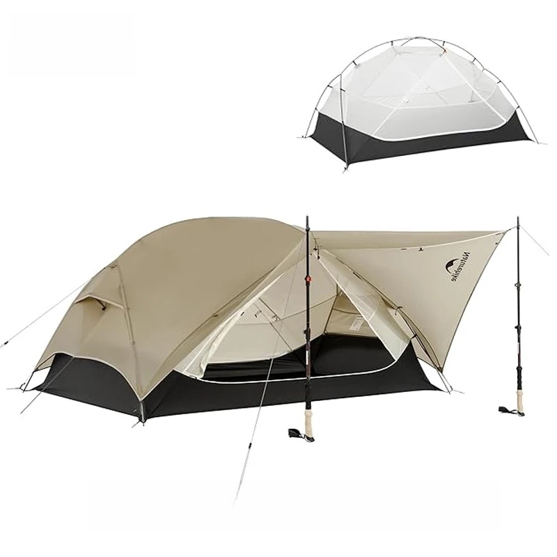 Naturehike Mongar UL Tent [2025 Upgrade] 1.5kg/3.3lb Ultralight Tents,1/2 Person Backpacking Tent,4 modes of use, Waterproof,Hiking tents for Camping with Front Porch,Easy Set up (Khaki, 2 person)