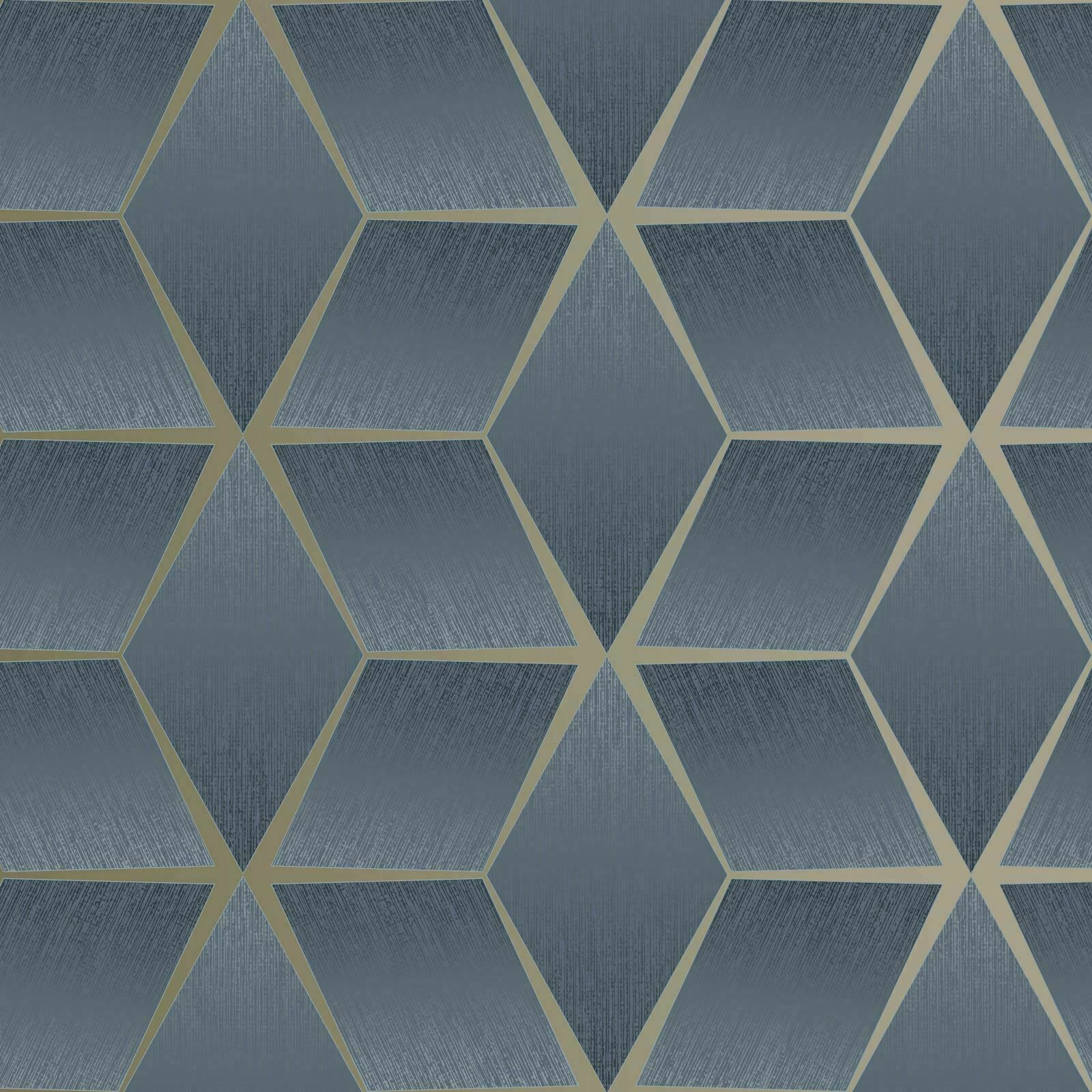 APEX GEOMETRIC WALLPAPER AQUA NAVY BLUE - FINE DECOR FD42001 SILVER