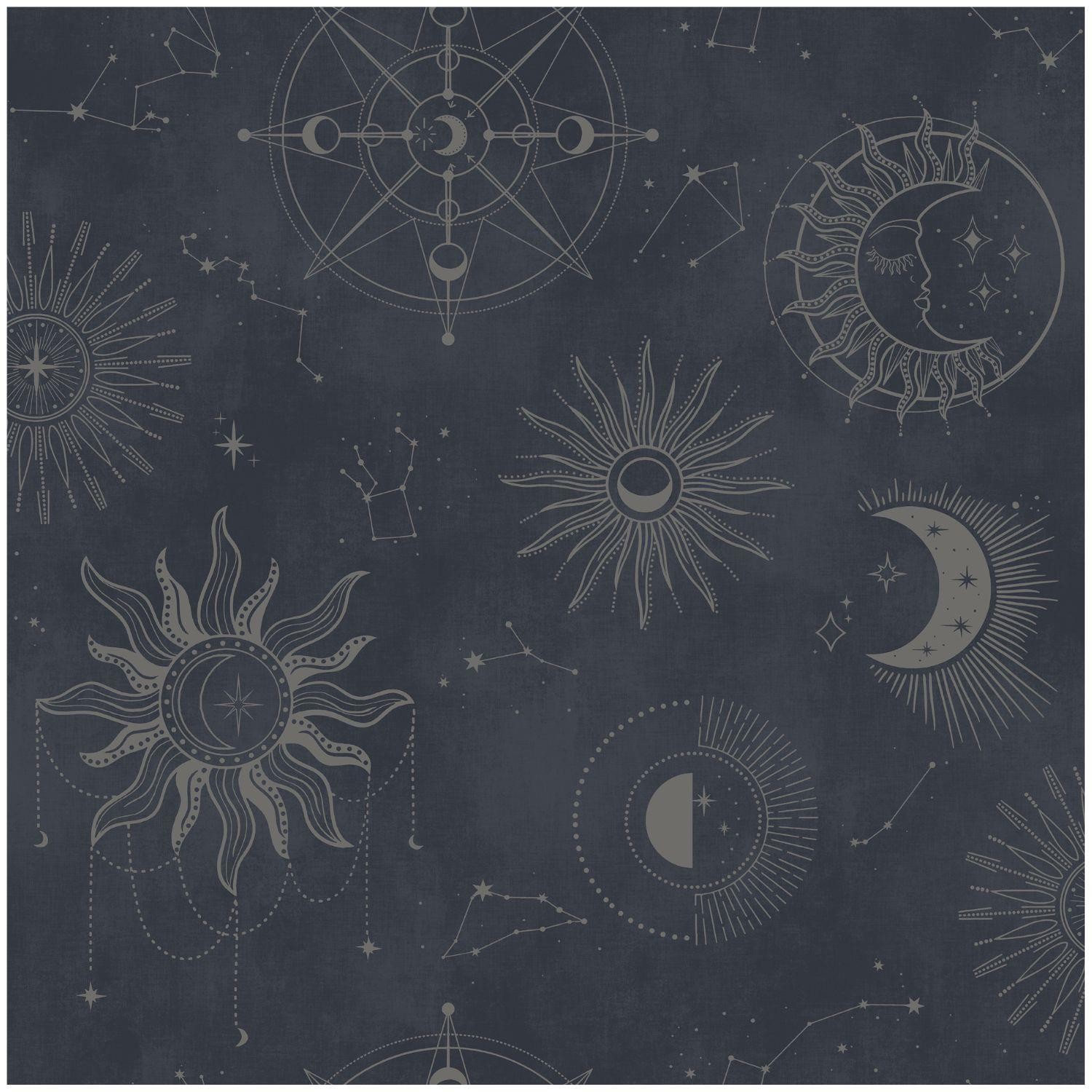 Navy Silver Cosmic Wallpaper Washable Modern Contemporary Paste The Paper