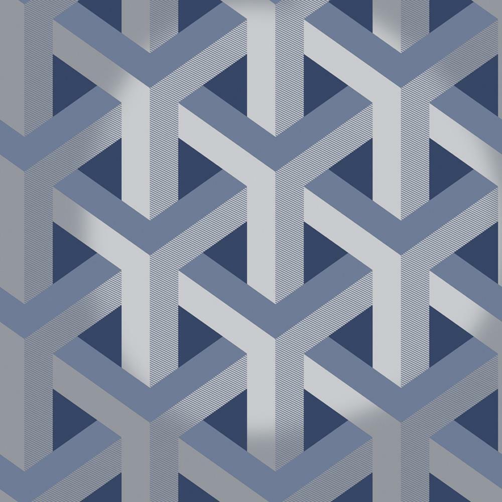 Elixir Cube 3D Diamonds Metallic Marble Muriva Wallpaper Navy / Silver 166512