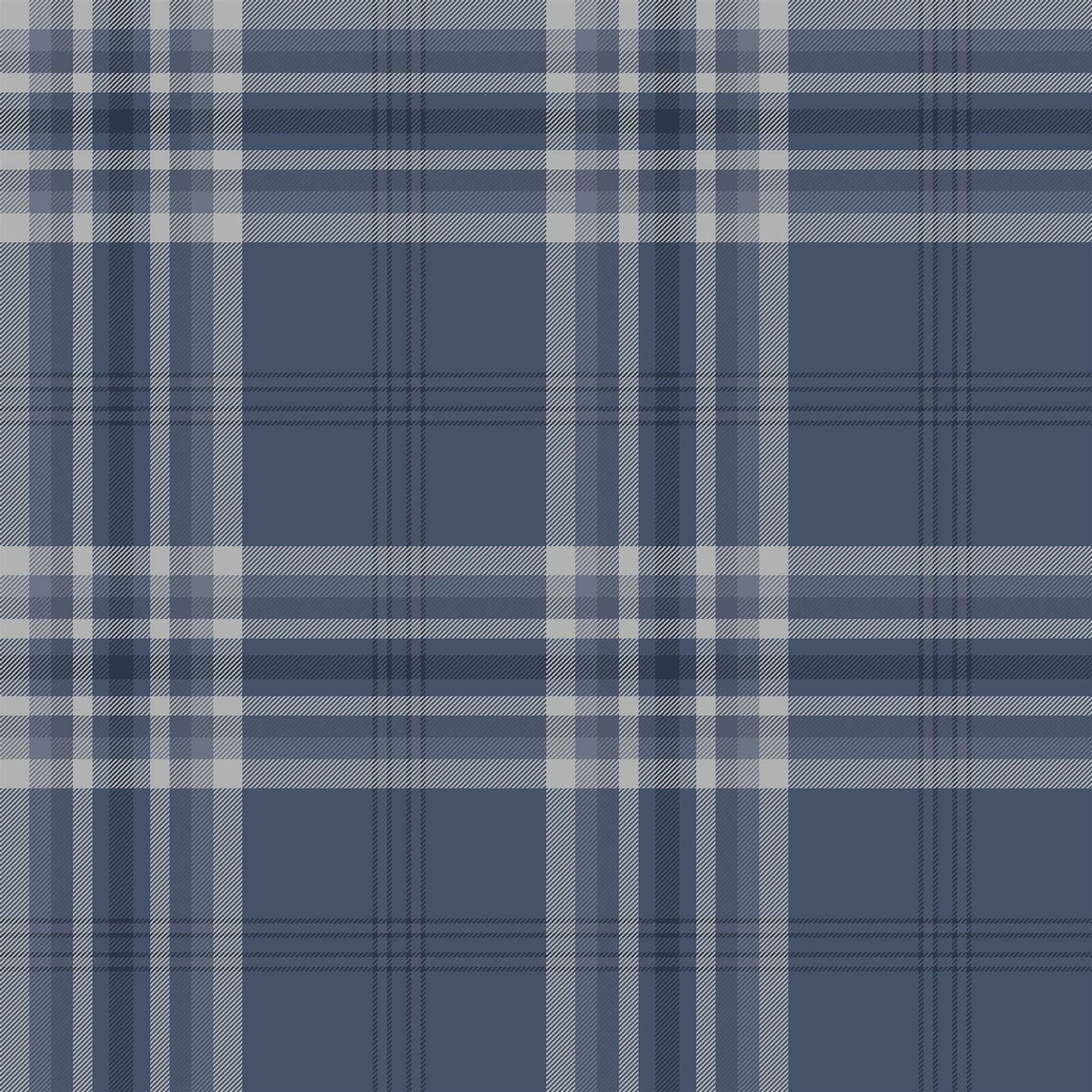 Kelso Check Navy Wallpaper Tartan Plaid Silver Metallic Catherine Lansfield
