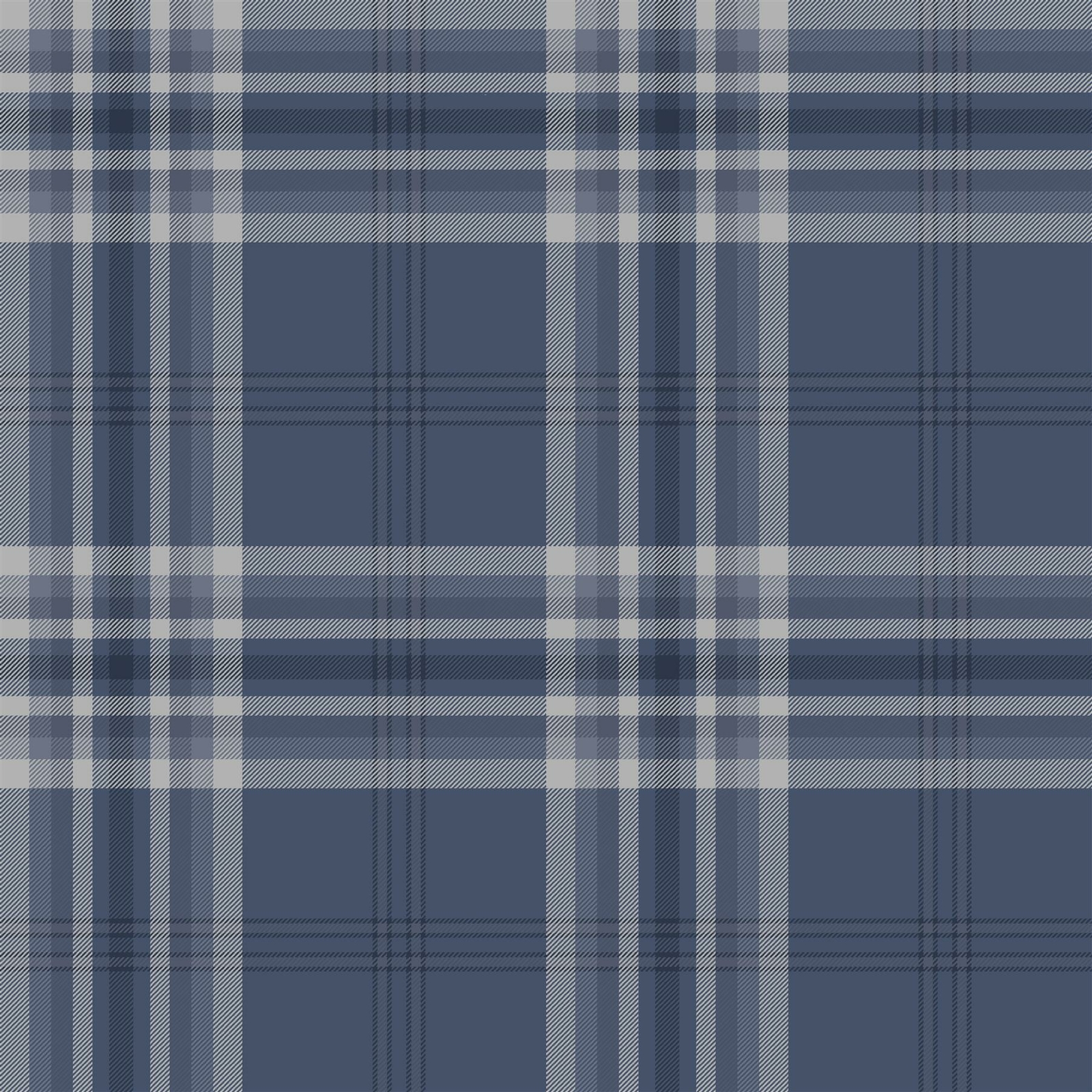 MURIVA KELSO TARTAN CHECK NAVY SILVER METALLIC TEXTURED WALLPAPER 165524