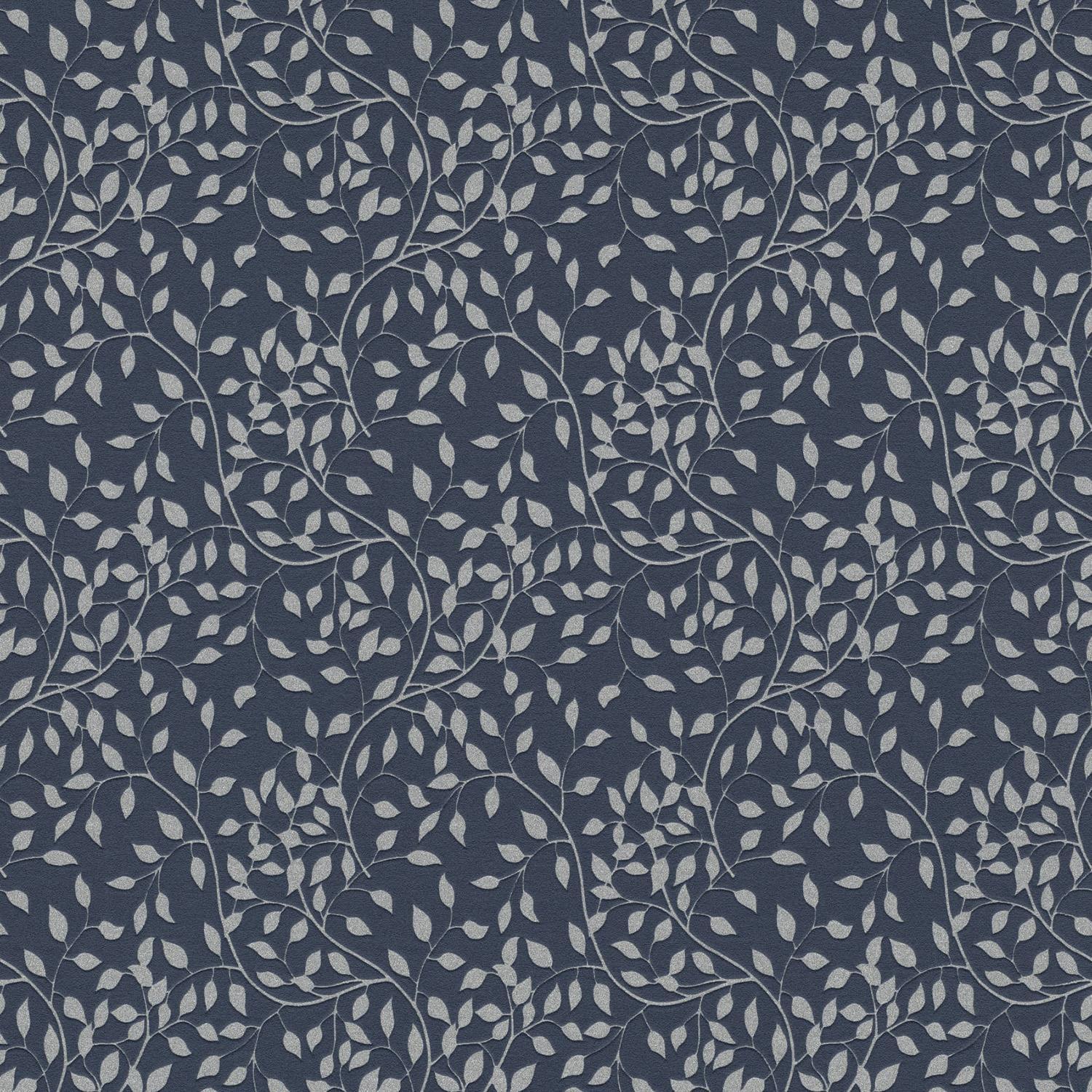 Trailing Leaves Navy Silver Wallpaper Blown Vinyl Metallic Paste The Wall Modern