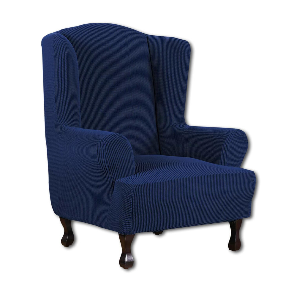 Wingback Chair Slipcover 2 Piece Stretch Navy Blue Armchair Protector with Snug Wrinkle Fit