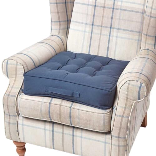 HOMESCAPES Navy Armchair Booster Cushion Large Firm 50 cm Square Seat Pad with Supportive 10 cm Thick Lift Luxury Soft Touch Cotton Dark Blue Cushion For The Elderly, Post-Operative and Pregnancy