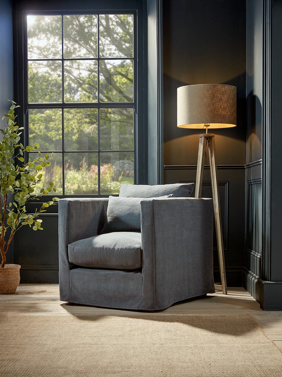 Habitat Frome Fabric Armchair - Navy Ash Leg