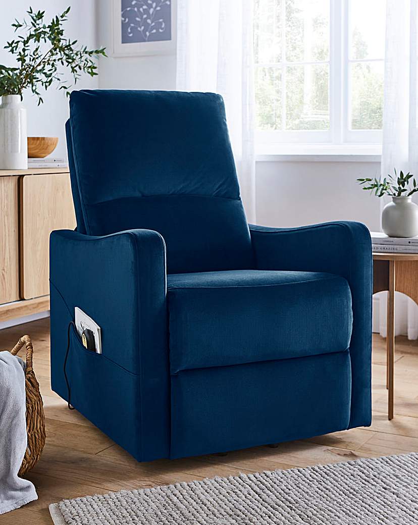 Lincoln Velvet Electric Armchair Navy - JD Williams
