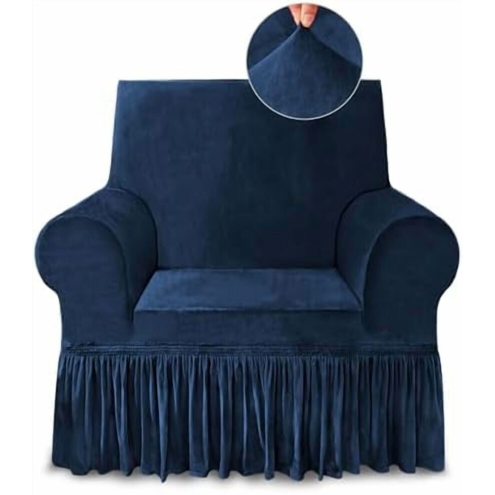 Stretch Chair Cover Polyester Corn Velvet Armchair-Navy blue