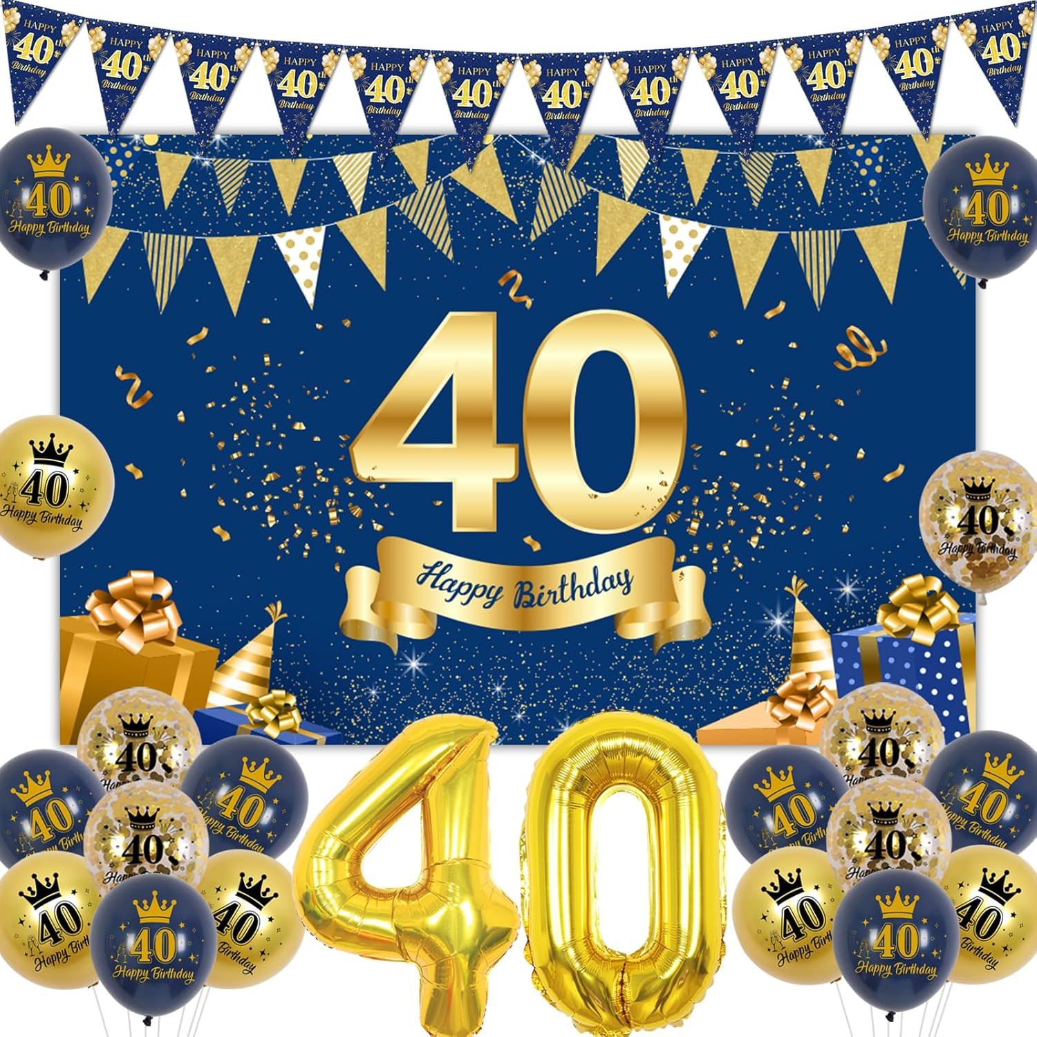 Sursurprise 40Th Birthday Decorations for Men Navy Blue and Gold, Happy 40Th 40