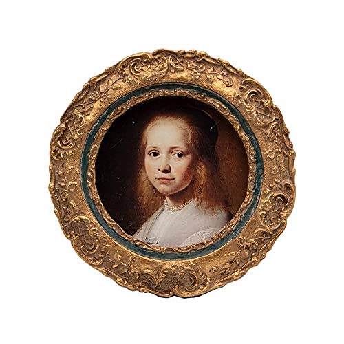 SYLVIA'S SHOP Small Antique 3 x 3 Round Picture Frame, Mini Vintage Ornate Photo Frame, Table Top and Wall Hanging Home Decor, Old Fashioned Photo Gallery Art Deco, Bronze Gold and Navy Blue