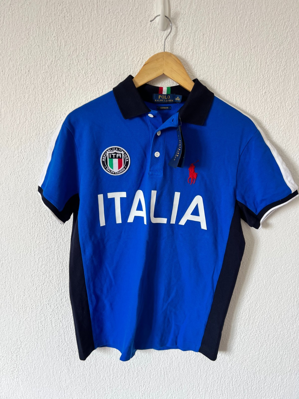 Polo Ralph Lauren Italy Republic Polo Shirt Mens M Blue Black Cotton Logo