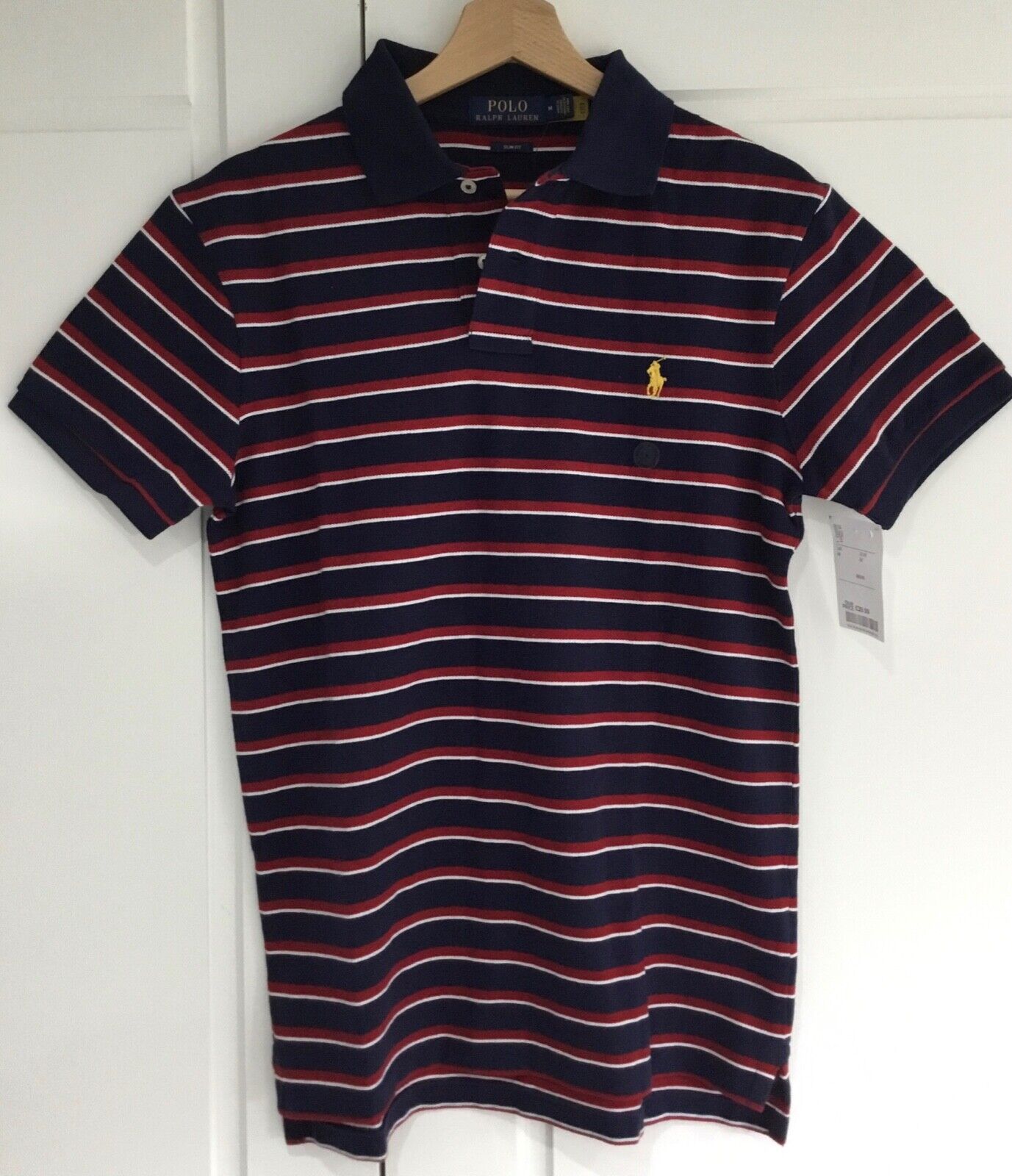 Polo Ralph Lauren Blue Striped Cotton Polo Shirt Size S RRP £ 75.00