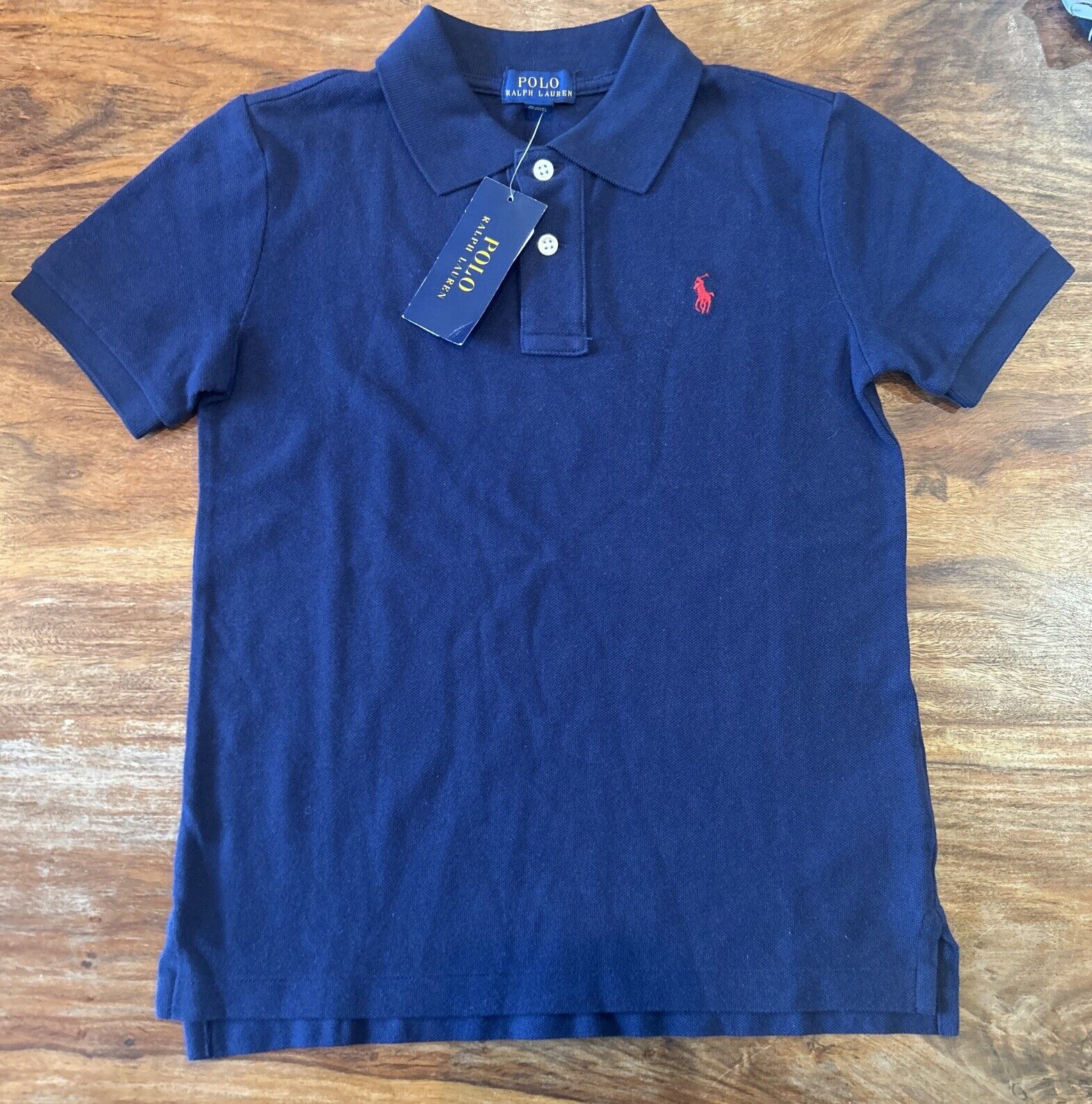 POLO RALPH LAUREN Boys Polo Shirt 7 Years Large Navy Blue Cotton