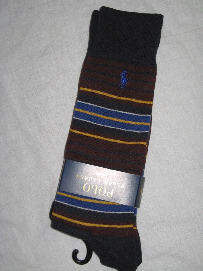 BNWT - RALPH LAUREN POLO Striped & Polo Pony Socks Navy Blue Wine 2 Pairs