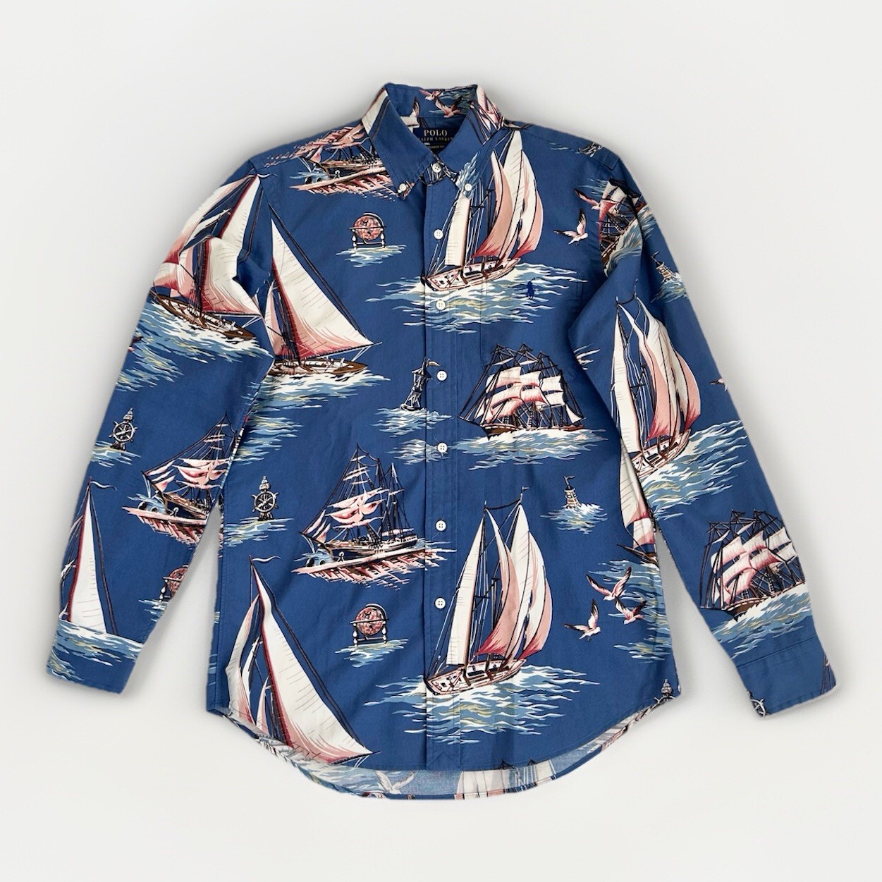 Polo Ralph Lauren Men's Shirt LS Blue Size Small Boats Nautical Classic Fit New