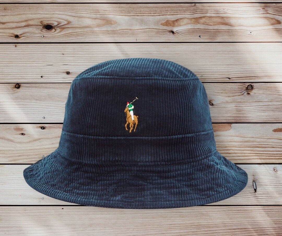 Polo Ralph Lauren Navy Blue Classic Corduroy Cord Bucket Hat L/XL 61cm