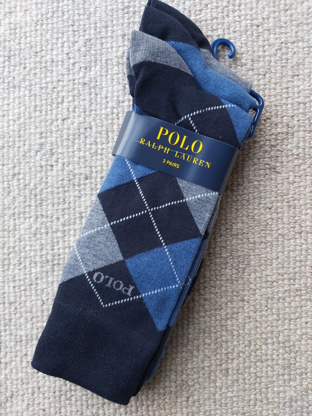 3 Pairs : Genuine POLO RALPH LAUREN Navy Grey Blue SOCKS Adult Mens One Size