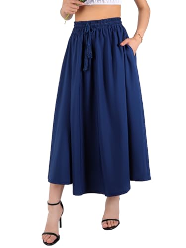 BALAYSIER Long Skirts for Women with Pockets and Adjustable Drawstring Midi Skirt Suitable for Casual Travelling Party(Navy Blue, L)
