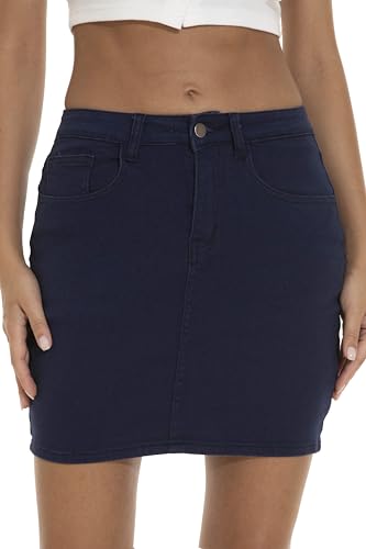 GUANYY Womens Mini Denim Skirt-Casual Stretch Slim Fit High Waisted Jean Skirts, Navy Blue, S