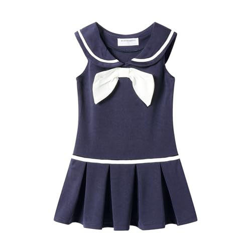 Mud Kingdom 7-8 Years Girls Sailor Dresses for Little Girl Sleeveless School Uniform with Pleated Skirt Navy Blue