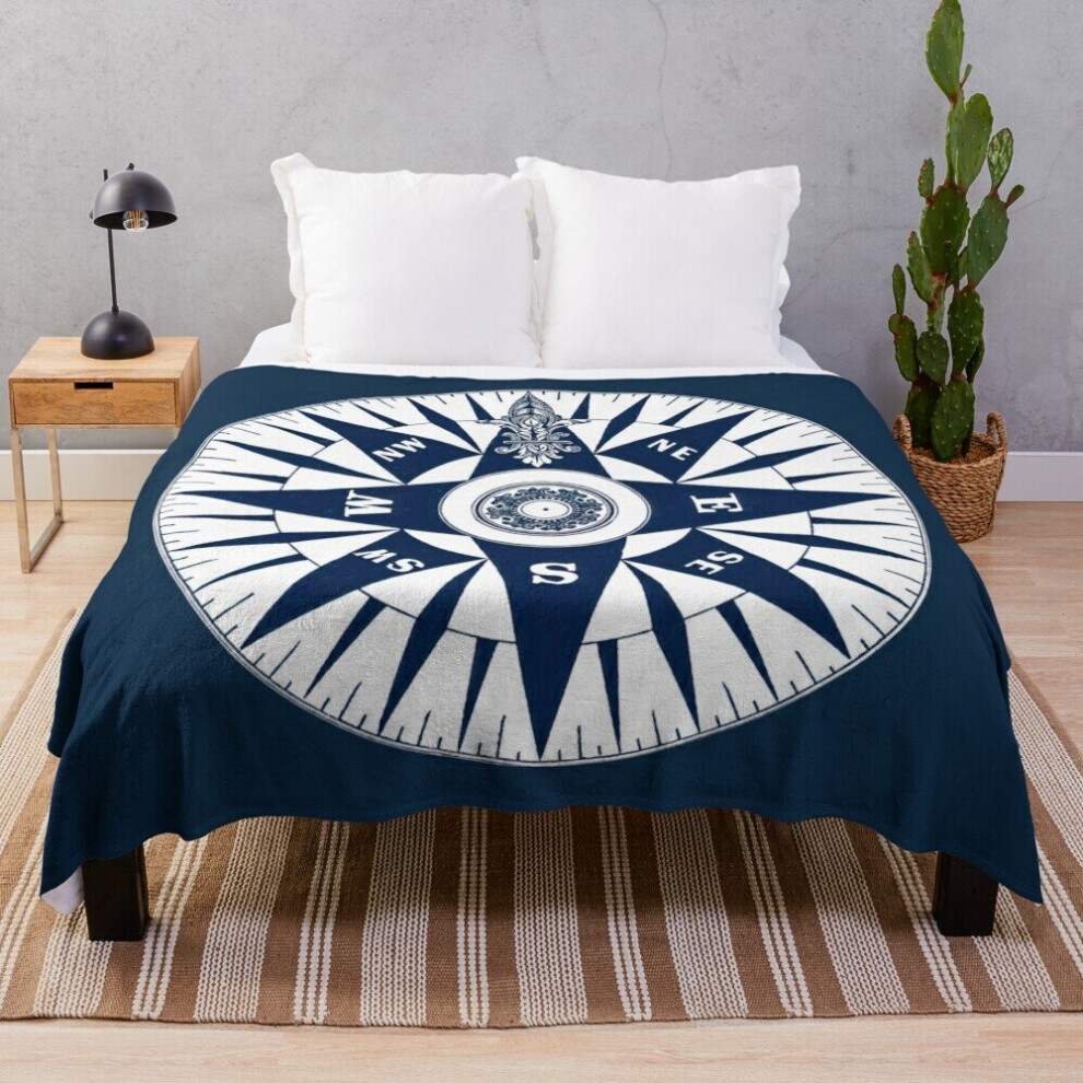 Fleece Throw Blanket Ornate vintage nautical compass on navy blue for Sofa Couch Kids 60 x 50 Inches